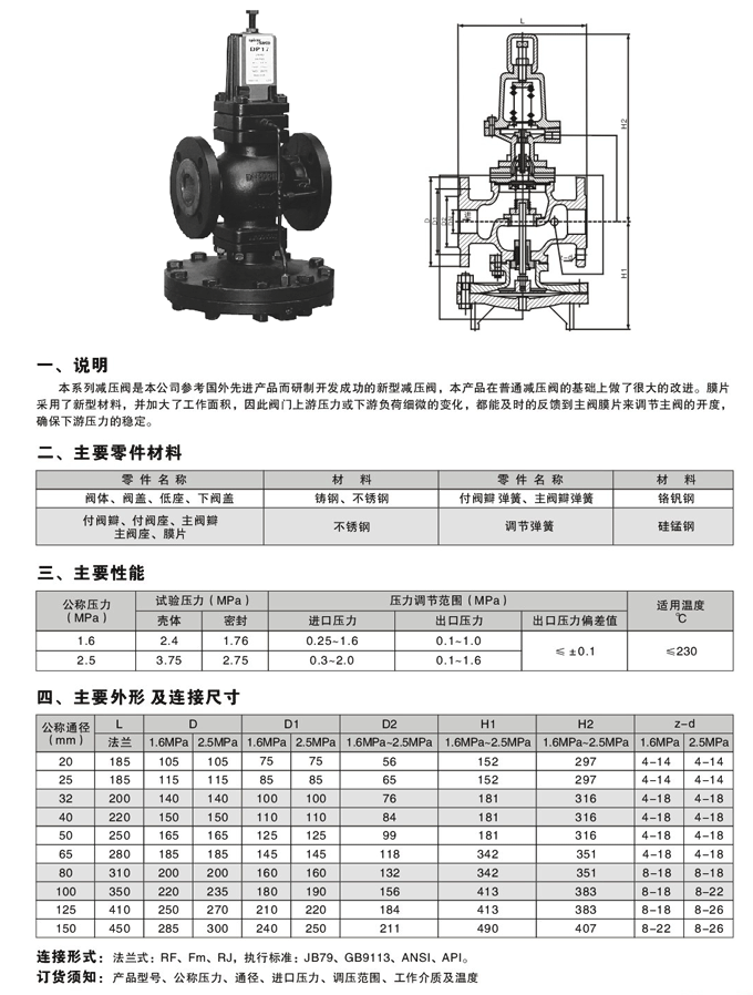 25P減壓閥啟動前導閥彈簧處于自由狀態時,主閥和導閥處于關閉狀態。導閥有彈簧力作用打開,蒸汽經由導閥進入主隔膜室,一部分蒸汽則經由控制孔流出,當導閥流入的蒸汽大于由控制孔流出的蒸汽,主隔膜閥中的控制壓力增大,打開主閥。隨著蒸汽流過主閥,下游壓力的增量經由感應管反饋,作用在導閥隔膜下,平衡隔膜上部的彈簧壓力,使導閥組建關閉節流,維持主隔膜中的壓力,控制主閥開度輸送適量的蒸汽。調節導閥隔膜上的彈簧即可改變下游壓力。同時,25系列調節閥的所有零件均能夠分解檢查或保養,而無需移動管路中的主閥體。正確的選型和安裝保養,更能保證其長期無故障的工作。